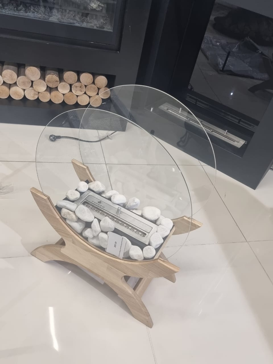 Отдельностоящая напольная модель. Состоит из основания изготовленного из дуба. Корпуса топливного блока. Два защитных термостойких стекла.