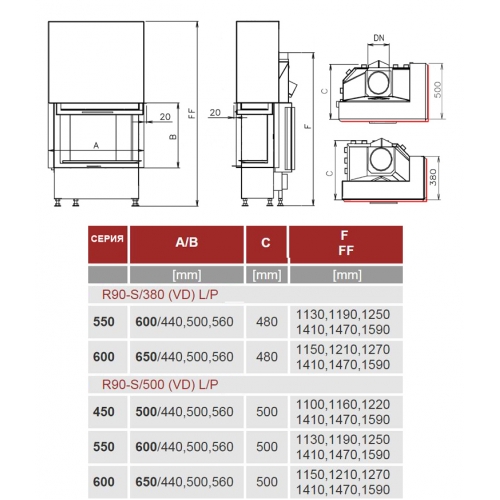 Каминная топка Kobok Corner 830 VD R90-S/380 L/P