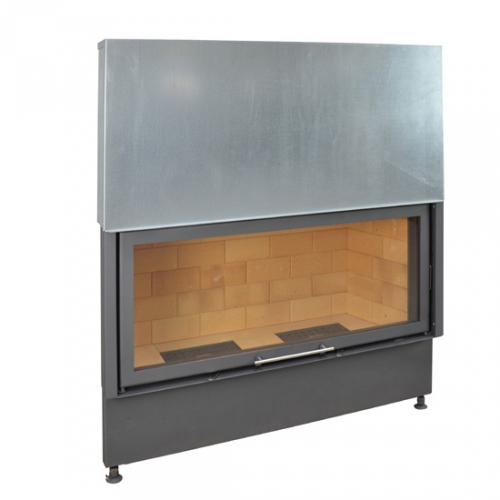 Топка с горизонтальным прямым стеклом придает камину оригинальный вид и увеличивает обзор огня. Данная топка оборудована подъемным механизмом двери, что гораздо упрощает процесс закладки дров. Благодаря системе "чистое стекло", сажа не оседает на стекло и смотровое окно остается чистым в течение всего топочного процесса. Внутренние стенки топки полностью проложены специальным огнеупорным материалом. Регулируемые ножки дают возможность устанавливать прибор на необходимую высоту.
