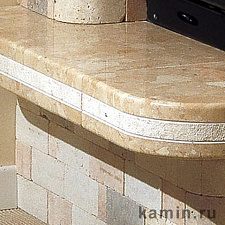 обрамление из тигрового восточного мрамора со вставками из нержавеющей стали.