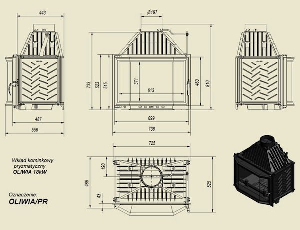 Каминная топка с водяным контуром и призматическим стеклом. Топка чугунная с номинальной толщиной стенок 7 мм. Ребра увеличивают поверхность нагрева. Отражатель в топочной камере увеличивает путь дымовых газов.
