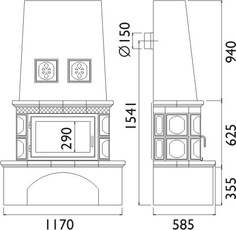 • Диаметр дымохода, (мм)